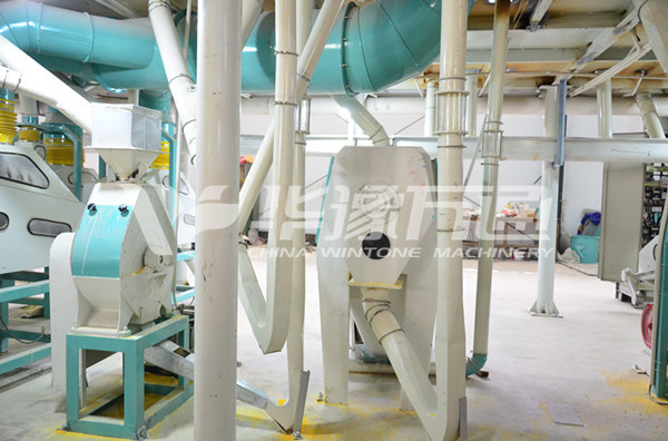 1. Cleaning part: one screening, one stone removing, one magnetic separation. Equipped with winnowing system, it can remove the big and small impurities, such as, dust, stone, magnetic material, rotten corn and so on. This part consists of beating, screening, de-stoner,magnetic separator and dampening. This section is to prepare for milling part and to protect the machinery as well.